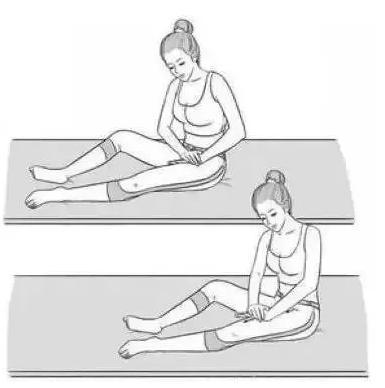 用掌根从大腿根部推至膝盖处。也可握拳后,用四指的第二个关节向下推。每次推300下。