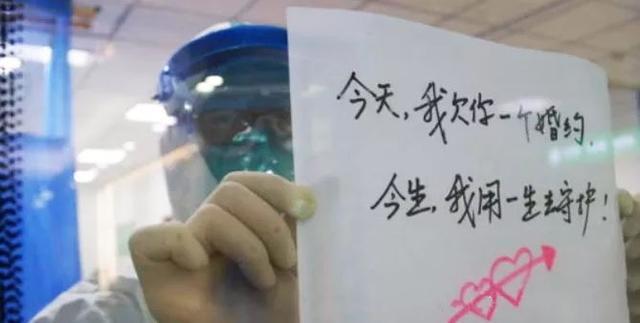2月2日,本该领证的好日子,他却冲上了前线,与未婚妻隔窗相望,写下了一段感人的誓言:今天,我欠你一个婚约。今生,我用一生守护。未婚妻看后掩面而泣。