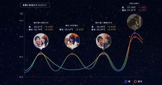 在一个日本的素人实验中,异地恋的两人在收到对方发来的消息时,体温上升 0.32 ℃;仅仅是谈论到对方时,体温也会自然升高 0.3 -0.4 ℃;与对方电话时,上升约 0.4 ℃;当分隔两地的男女终于见面,相拥的一刻,体温上升了整整 1 ℃。