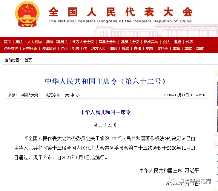 《中华人民共和国著作权法》是著作权领域的基本法,自1991年6月1日实施以来,历经2001年、2010年两次修改。2020年11日,十三届全国人大常委会第二十三次会议表决通过了关于修改著作权法的决定,自2021年6月1日起施行,此次修订是著作权法第三次调整修改,是我国著作权法律事业新的里程碑,对于促进新时代版权事业高质量发展具有重要意义。(来源:全国人大官网)著作权法修订的重要内容此次修订是对现行