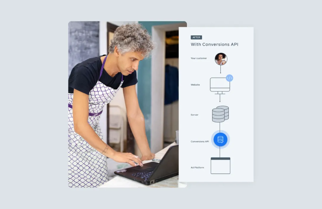转化 API 专为广告主而打造,可帮助广告主收集和分享数据,用于 Facebook 广告定位、优化或成效衡量。由于浏览器和移动平台的政策变化导致 Pixel 像素代码的有效性降低,而通过集成转化 API,从服务器(而非浏览器)直接向 Facebook 发送网站事件,可以建立更加可靠的数据关联。