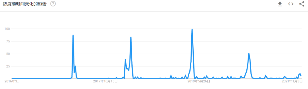 对于查询关键词趋势的工具,最具代表性的便是Google Trend了,只需要输入相应的关键词,就能看到这个关键词在一段时间内的热度变化趋势,重点是,这个工具还是免费的。