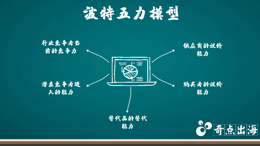 要对竞品进行分析,我们完全可以直接引用迈克尔·波特的"波特五力模型"理论,将其应用于亚马逊的竞品分析问题中。