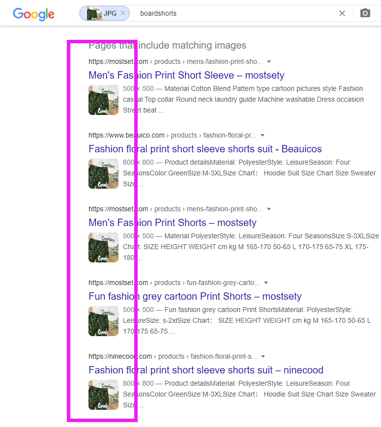 继续往下拉我们就可以找到卖该款产品的所有有出现该图片的网站链接。
