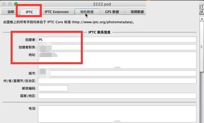 4、还可以填写IPTC详细信息,当有人想用你的原创图片时,可以及时跟你取得联系。