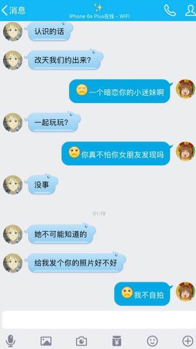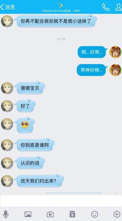 没想到我也遇到了这么戏剧性,真的很气了。先来讲讲我们怎么认识的吧就是那个最近特火的游戏王者荣耀,好了直接甩截图你们自己感受吧我先用大号悄悄话给他发的然后就把小号给我了让我加,不是说没兴趣嘛?直接就把小号甩给我了?然后我就加了还相约做爱你怎么不吃屎平时看着那么正经没想到这么骚我要先去回他消息了他饥渴的找我呢平时回我消息都没那么勤过真的无fuck说了人家已经打算开始撩下一个了然后人家不回了嫌我回的慢了