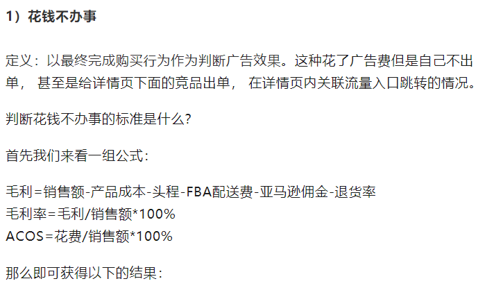即意味着如何我们的广告关键词的ACOS 是高于我们的毛利率的时候, 那么我们的广告不概率是亏钱的, 但是本身广告流量对自然流量是有促进的作用的, 所以前期这样的牺牲是必要的。