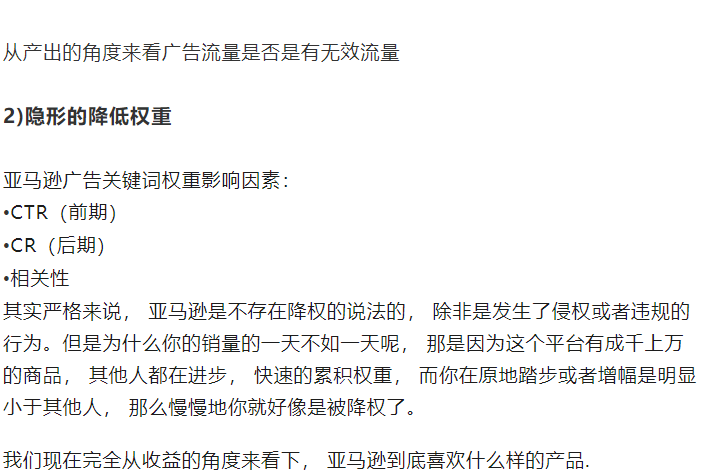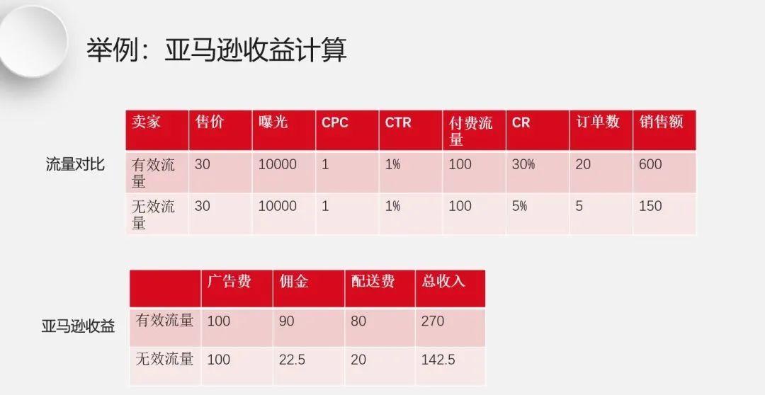 同样的商品, 有效流量和无效流量不仅仅是给卖家带来的收益是有出入的, 同样的亚马逊获得的收益也是有出入的。同时将各项数据不好的商品推给客户, 也不符合亚马逊的A9算法和经营理念。