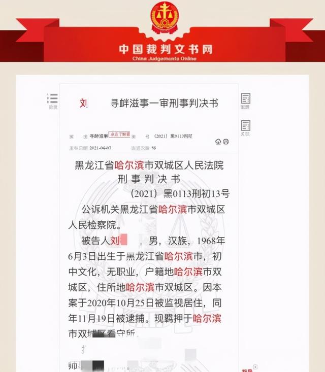 2021 年 1 月 6 日,黑龙江省哈尔滨市双城区人民检察院以寻衅滋事罪起诉刘某。法院一审认为被告人刘某因对被害人心存怨恨而持械行凶,严重侵害被害人的人身权利,其行为已构成故意杀人(未遂)罪。