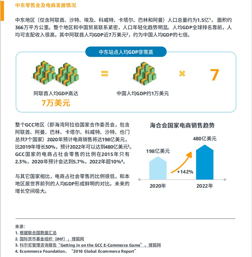 目前亚马逊已经向中国卖家开放了17个站点,本次我们来介绍一下中东站点。普遍卖家应该都比较清楚,中东地区人均可支配收入高,但电商占社会零售的比例却很低,市场潜力大。我司深耕中东地区物流多年,也比较清楚中东作为备受欢迎的电商蓝海,未来会有颠覆性的改变。