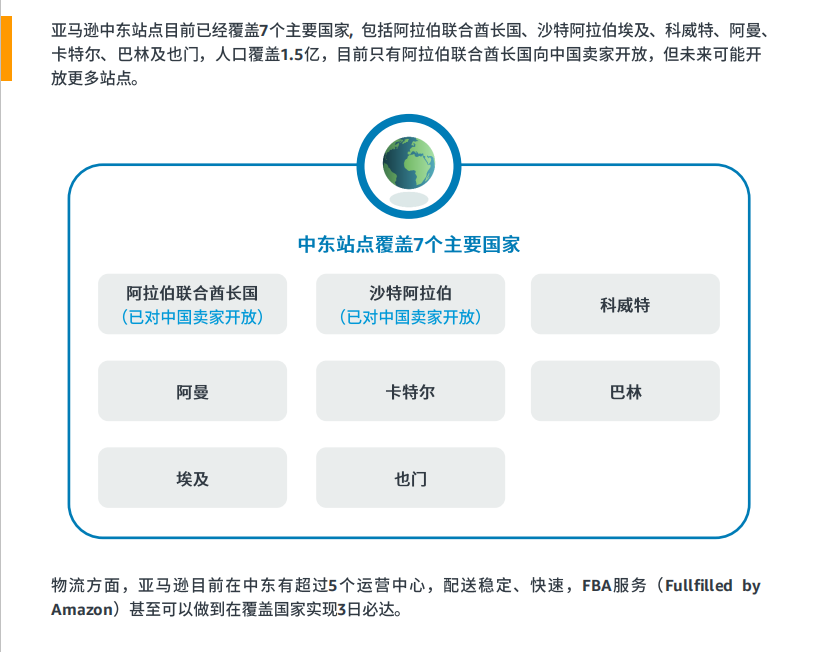 自亚马逊收购了中东电商平台Souq之后中东实测了3个站点,阿联酋、沙特和埃及。目前亚马逊已开放了阿联酋和沙特站,而埃及站点预计在明年Q1或Q2季度开放。