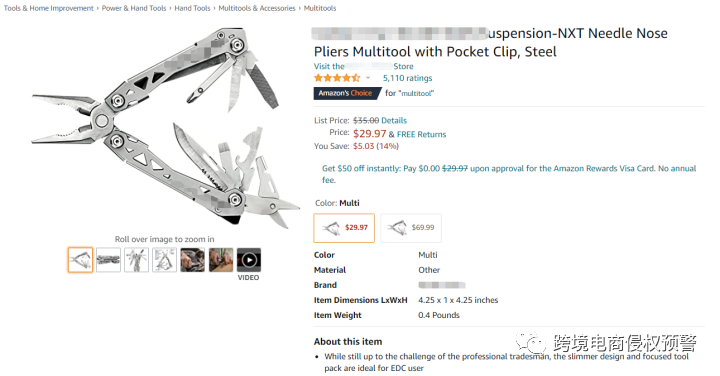 亚马逊爆款产品,多用途工具钳防侵权检索案例分享。