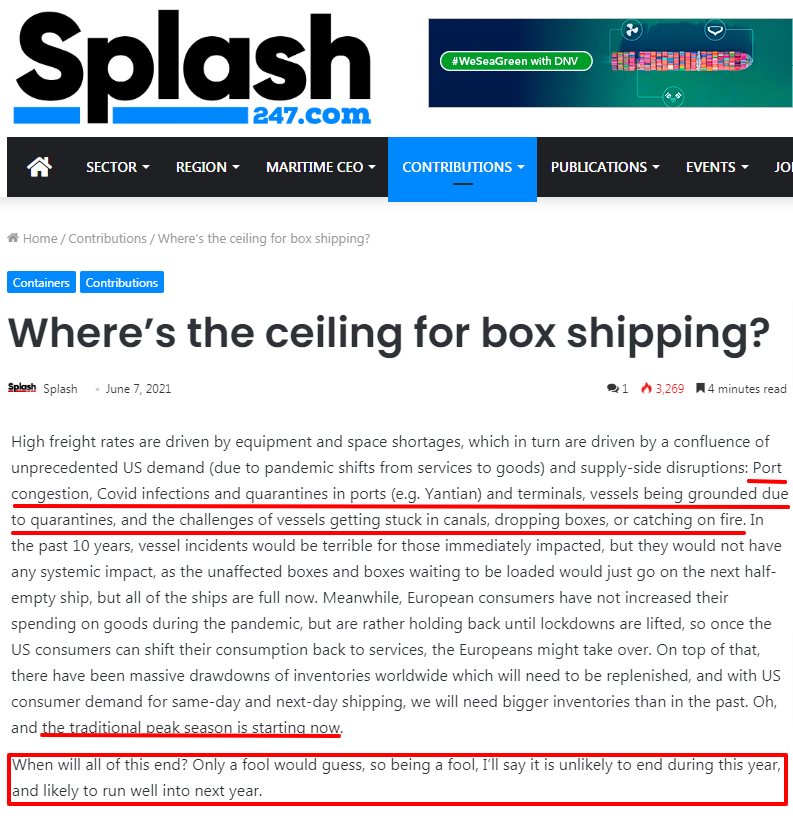 这篇文章甚至就直说了:这疯狂的运价今年都不太可能结束。