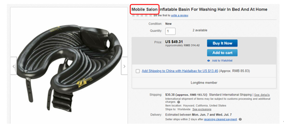 如果卖家朋友上架到网店的产品和Chrome Cherry相同或相似,或者在产品描述中使用了"Mobile Salon"商标词,则可能构成侵权,如下面这位卖家:
