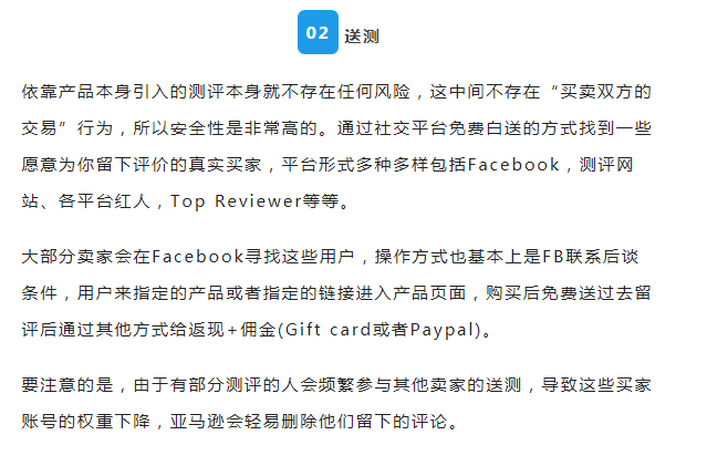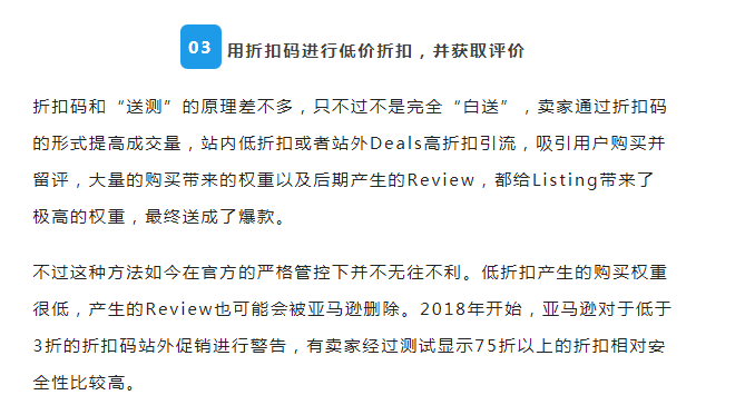 在亚马逊平台严格管控下,如何优雅又安全地行走在这块"敏感地带"需要卖家自身修炼硬功夫,今天就根据Review获取来的多个途径,把所有的"心法"都讲一遍。一般的测评方式不外如下:01刷单利用大量虚假账号进行虚假购买,账号、地址、评价。真人刷单成本较高,市场上主流的刷单方式分为刷FBA、刷小号跟卖自发货或者旧货。从2018年的政策严打来看,一旦操作不当被亚马逊严查,极易功亏一篑。被平台发现的刷单卖家将面临以下处罚: