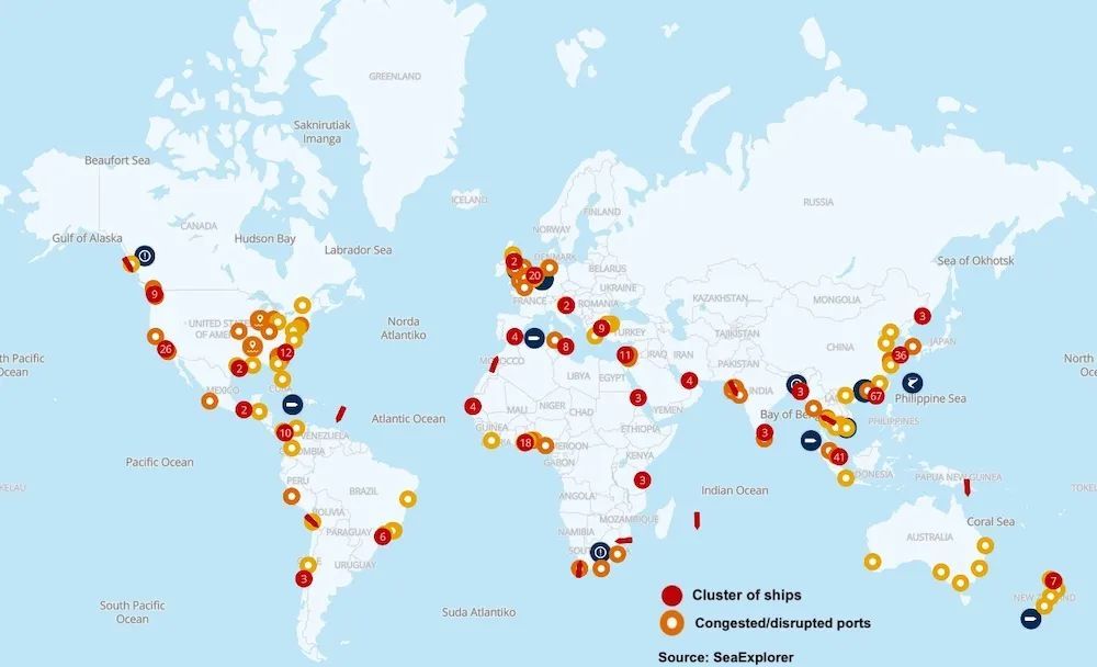 拥堵恶化!全球116个港口拥堵328艘船舶受影响