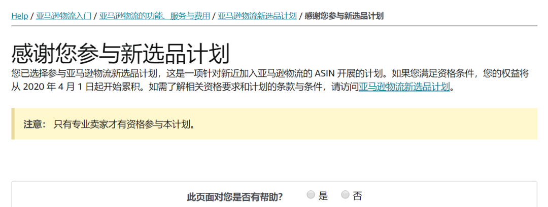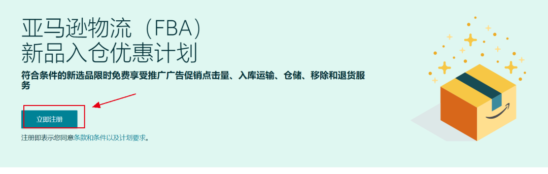 1.注册"亚马逊物流新品入仓优惠计划"的专业卖家;