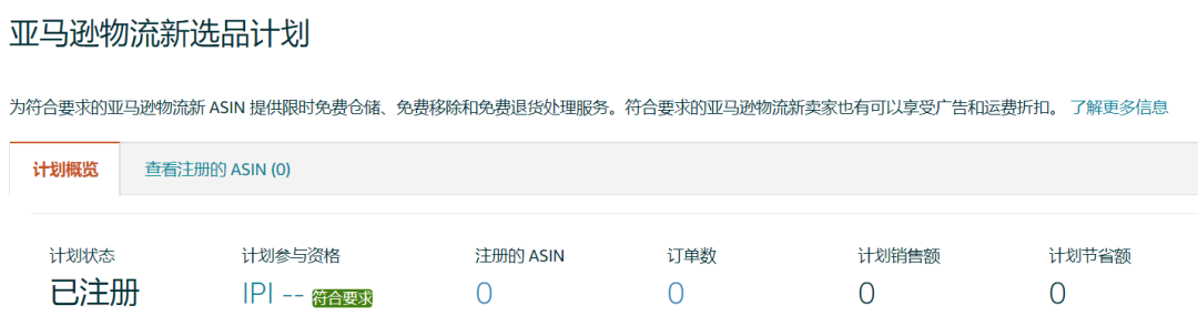 即可查看注册的ASIN,订单数,计划销售额,计划节省额等数据。