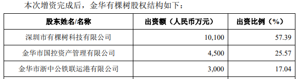 其中深圳有棵树持有金华有棵树 57.39%股权,