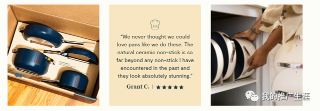 CarawayHome是一家专门生产不粘锅的陶瓷锅碗瓢盆,成立于2018年,到现在也就是3年时间。它上面的所有产品都是通过中国的工厂进行制造贴标,其实世界上大部分的产品也都是中国工厂生产出来的。其实不粘锅的陶瓷锅碗瓢盆竞争也很大,CarawayHome前期就专门主推这种四件套,一整套的陶瓷餐具,同时针对餐具的颜色进行了重点设计,推出了很多一般餐具所没有的颜色,例如薰衣草,这个颜色让很多家庭主妇非常