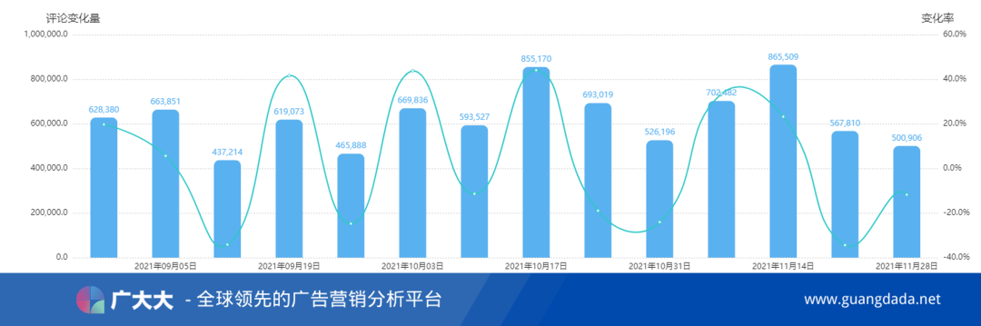 黑五正向作用明显,品类活跃度提升显著 图表:亚马逊家居厨房品类近三月评论增长走势图 数据解读: