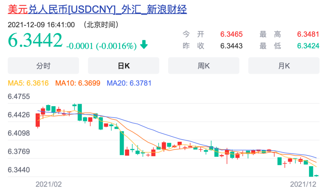 在12月9日,美元一度跌到6.34,创3年半以来新低!后来,随着金融机构外汇存款准备金率上调2个百分点的政策发布,汇率回到6.36左右。