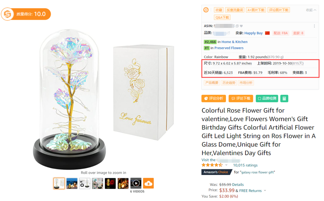 老外情人节都送什么呢?其实很多礼物和我们国内的差不多,比如下图中的玫瑰花灯,看最近30天销量有6,523件,是款抢手货。