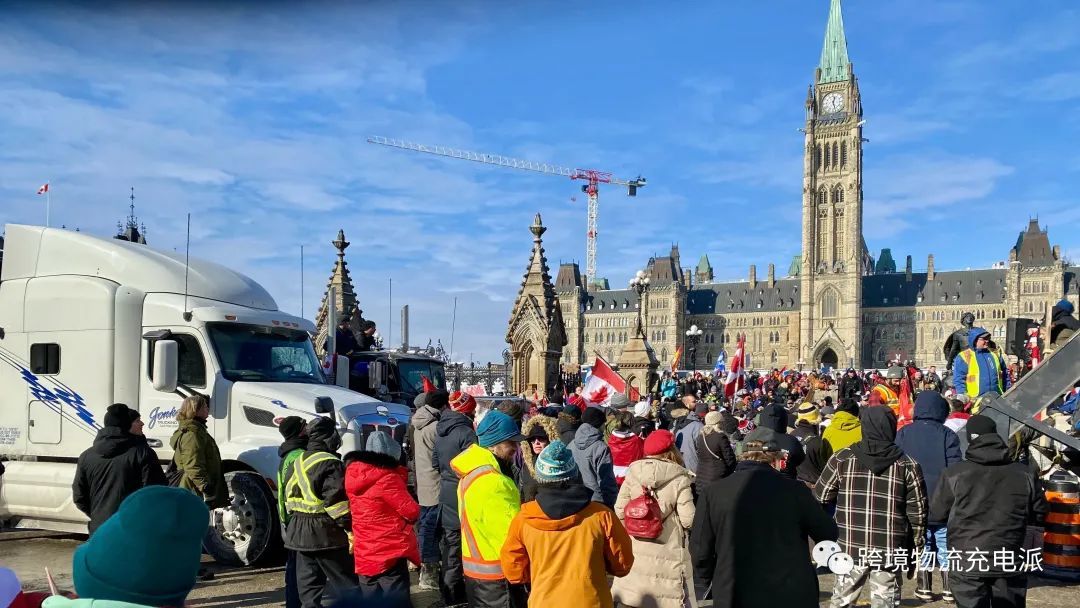 当大批抗议者和更大的乘用车车队挤满多伦多市中心的几个街区时,卡车司机按响了喇叭。有些人爬上钻机,有些人甚至跳舞。组织者曾希望车队能到达安大略省政府所在地皇后公园,但是被大量的警察阻止了这种情况的发生。