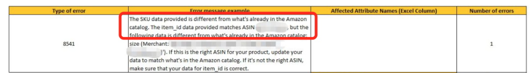 8566、8541报错说明使用的UPC有问题,需要更换UPC/EAN,UPC12位EAN13位,不同变种sku对应UPC/EAN不可重复或已被使用。若brand 和制造商无效,品牌没有备案请更换,可写产品拼音(不可写oem)