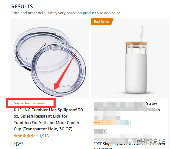在上方的四个广告位中,有很多人不知道第一个位置是什么,就是上方最左边的这个"Featured from our brands",它跟平常我们见到的"sponsored"广告位有不同的标识。