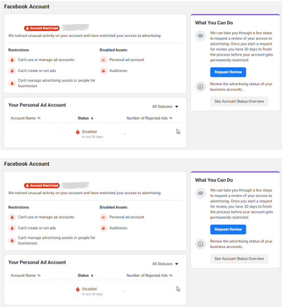 Facebook 公共主页的受限原因与 Facebook 广告账户和 BM 受限原因基本相同: