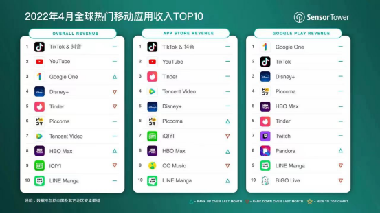 据AppIntelligence最新发布的2022年4月全球下载量最高的10大应用,