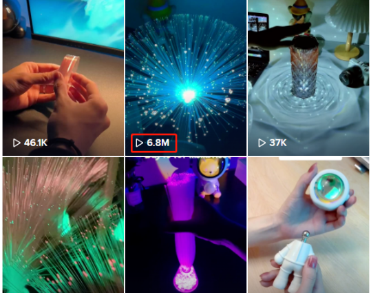 像下面这款五颜六色的灯,在TK上的播放量已经达到了680万,点赞量也高达260万。