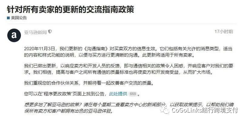 9月8日,Amazon发布了最新的卖家沟通指南,该政策将在11月3日起生效。也就是说,还有不到2个月的时间,卖家又要完全迎合新的规则了,这对于广大的Amazon卖家来说,无疑又是一个新要遵守的规则。