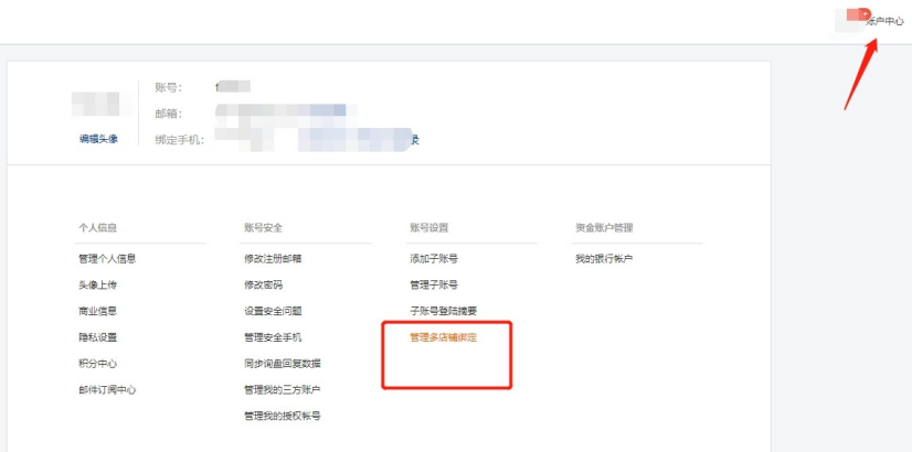 绑定好后,去登录下被绑定的平台,然后点击账户中心, 管理多店铺