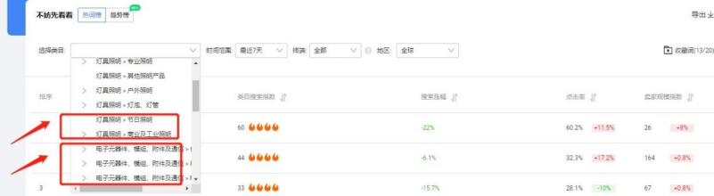 选好多行业后,这边就可以多查看关键词指数其他行业的数据了,比如: