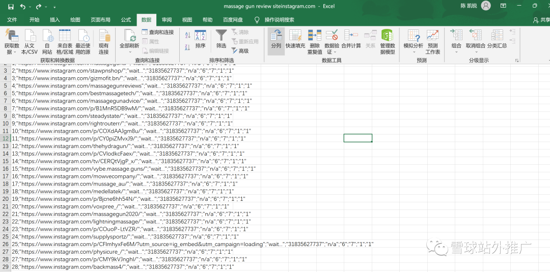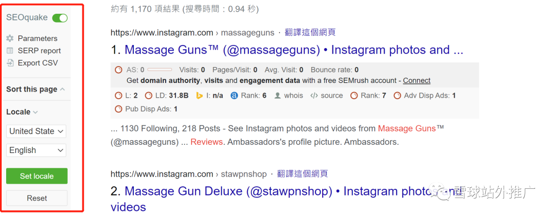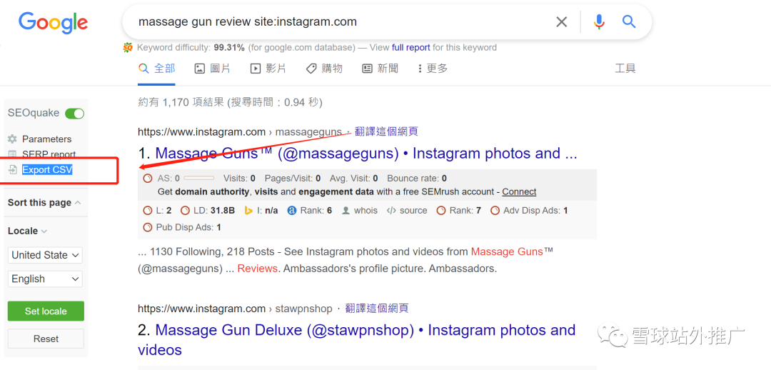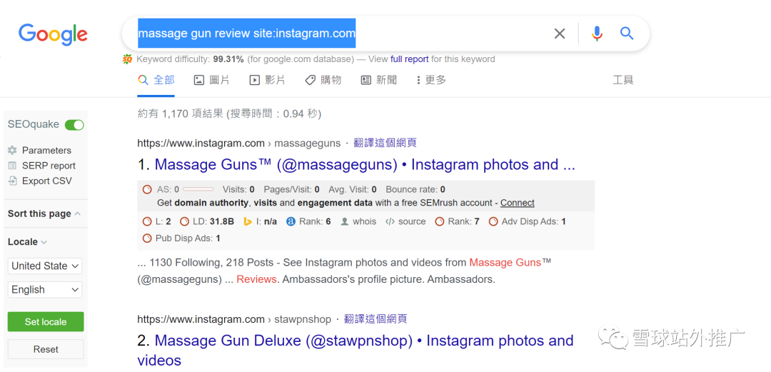 第一步:随便找一个谷歌指令,比如,我们要找ins关于筋膜枪的测评网红,我们用这个谷歌指令:massage gun review site:instagram.com