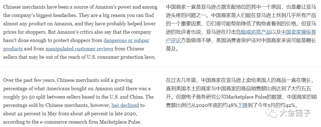 但是从2021年开始,中国卖家在亚马逊平台的数量在稳步下降。而欧美本土卖家的销售份额日渐增强。据电子商务研究公司Marketplace Pulse的数据,中国商家的销售额比例已从2020年底的约48%下降到了今年5月的约42%。