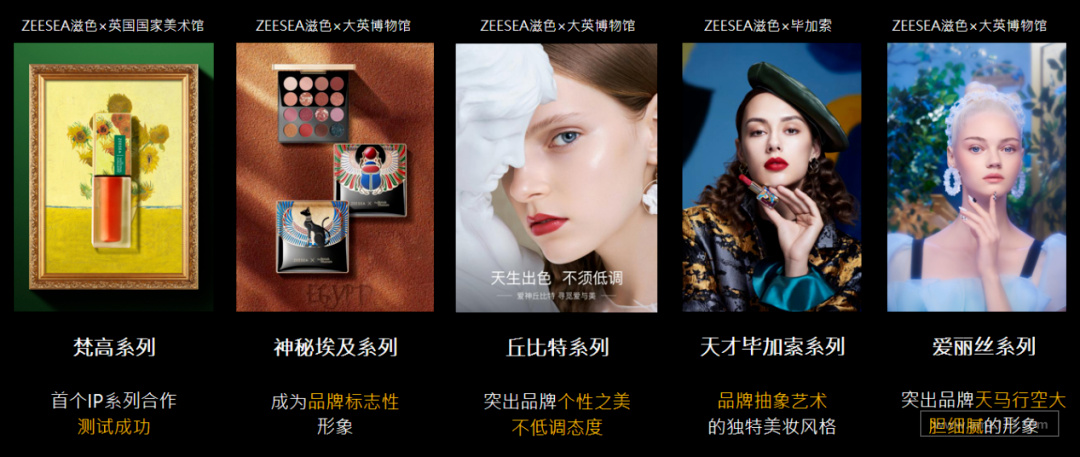 据不完全统计,美妆品牌完美日记已经和海内外超过15000名KOL达成合作。通过有效的红人营销,品牌不仅可以与买家建立真实联系,也可以提升目标受众对品牌的认可度。 美妆市场另一出海先锋ZEESEA滋色,其核心策略是联名大IP赋予产品更多的文化内涵——曾先后携手英国国家美术馆、大英博物馆、毕加索等世界级文化艺术大IP,众艺术IP系列在国内外上线后广受好评。 正如ZEESEA滋色市场总监贺济才说,"跟国际IP合作能快速让新品牌打入海外市场,依靠IP影响力建立品牌知名度。"