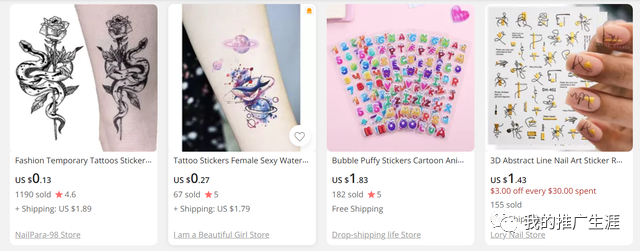 上面这张图片是速卖通的产品,很多人会疑惑这么便宜的贴纸能够赚钱吗?不会连运费都赚不回来吧。