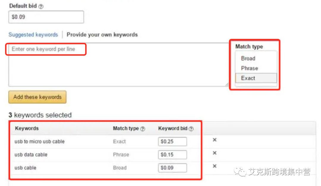手动广告关键词分为广泛匹配、词组匹配和精准匹配。无论采取那种匹配方式,广告的选词都很重要,下文我一一列举: