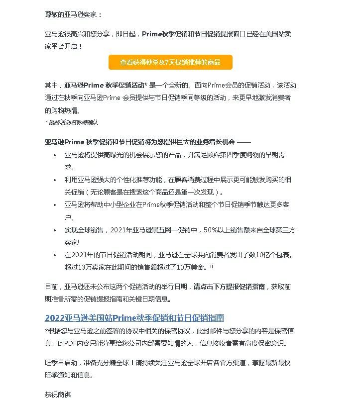 亚马逊秋季大促的消息,