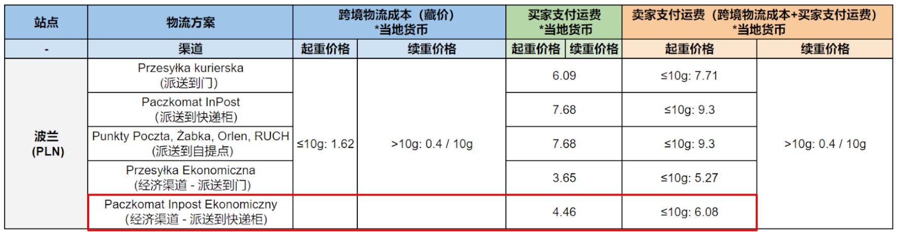 您好,为了更好的服务Shopee跨境卖家,提升商品竞争力。Shopee波兰站点将于2022月6日7日 15:30(新加坡时间)新增SLS物流渠道:Paczkomat Inpost Ekonomiczny(经济渠道-派送到快递柜)。具体费率如下: