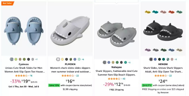 尽管"凉鞋"登上搜索排行榜,"Birkenstock女式凉鞋"成为鞋类焦点,"crocswomens"和"crocsmens"也是热门搜索。本月最新的趋势是鲨鱼洞洞鞋,他们在本月的搜索量中占据了一席之地。