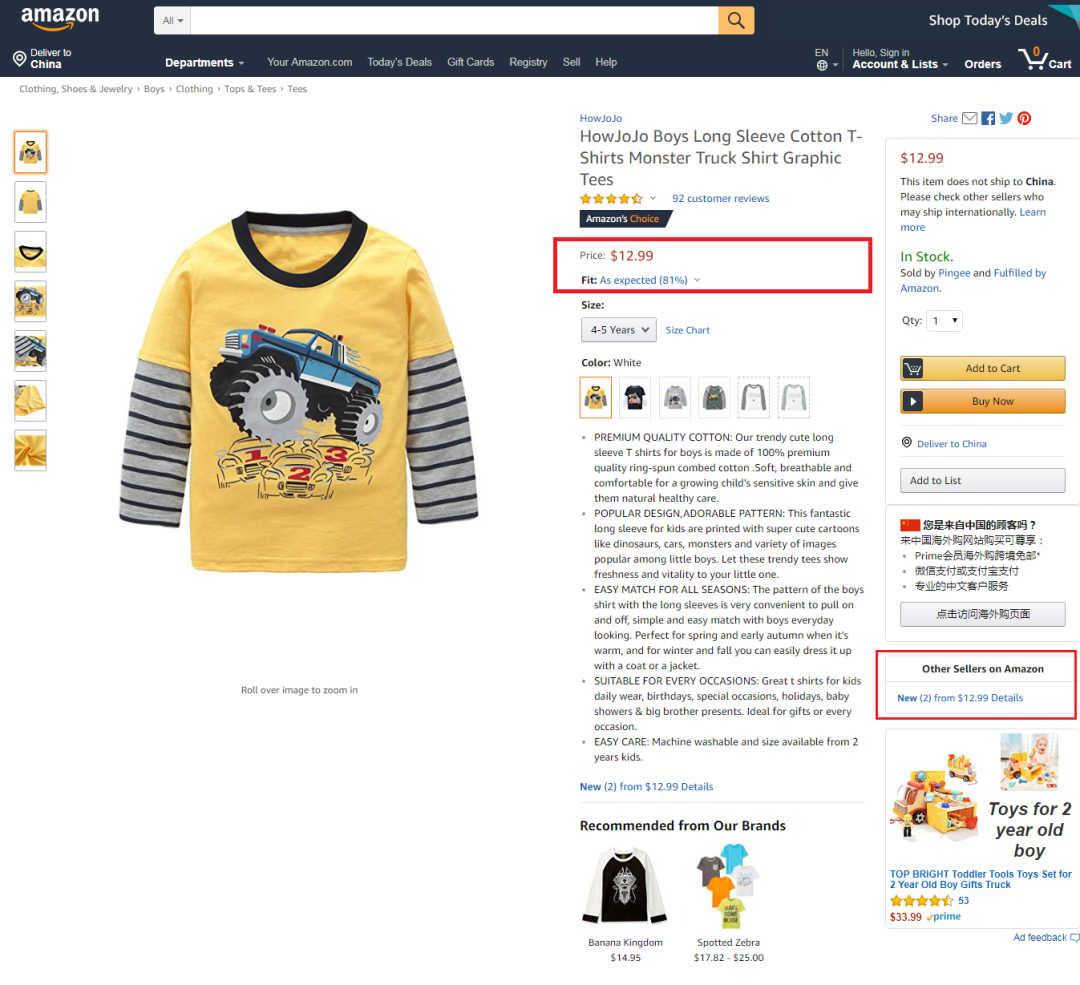 1.分析产品的价格(Price)分析产品的价格包括抢到黄金购物车的产品的价格(见下图)。价格直接关系到成本,只有产品单价符合卖家的店铺定位,才值得卖家花时间去进一步深入研究产品。另外,一些大件的商品可能很畅销,比如沙发,但它的体积大,相关成本如物流费用也会很高,一般的卖家是无法承担的,那么可以直接放弃。如果产品的市场价格过低,可能没有利润,这些商品也不需要深入研究。