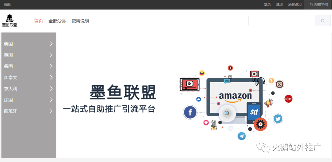 今天给大家分享一个自助做亚马逊站外推广的网站《墨鱼联盟》,