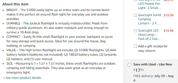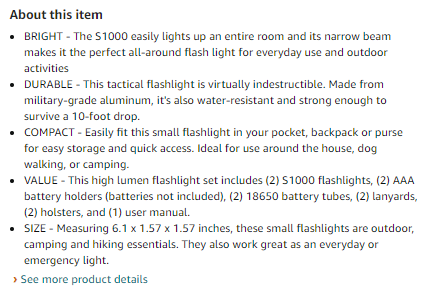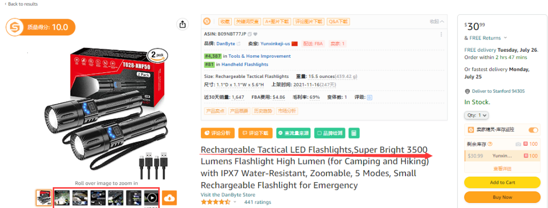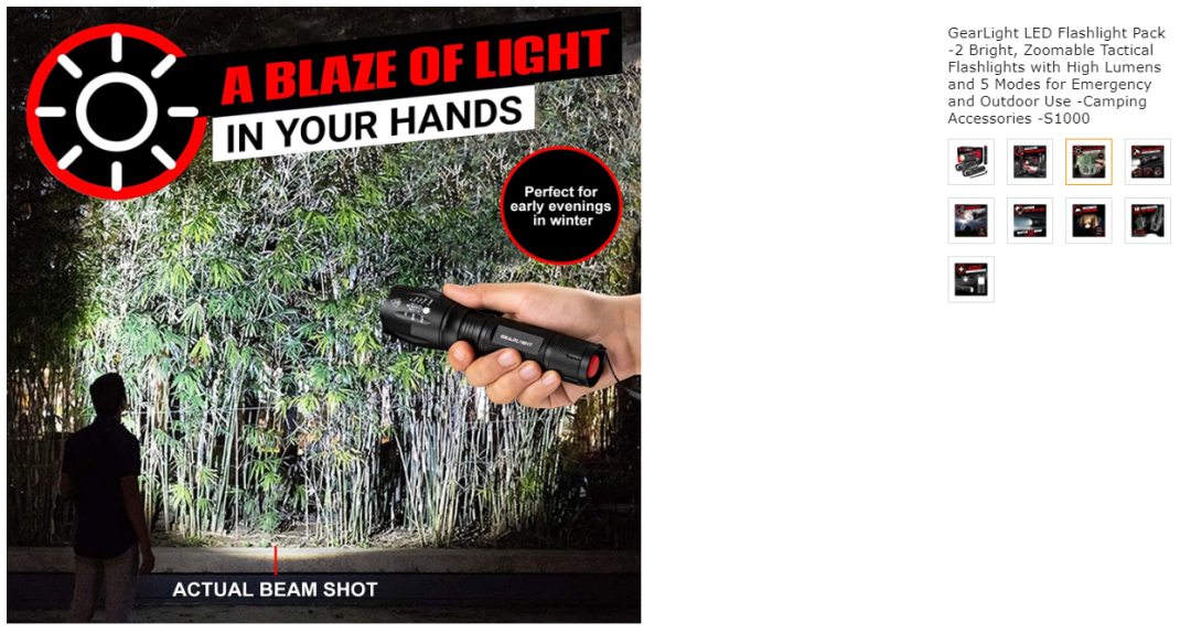 而中国卖家首先展现的是产品的卖点属性"rechargeable""super bright""3500 lumens"等,以及搜索量最高的关键词,关于品牌的宣传这个问题,几乎贯穿了整个这个美国卖家listing的整体销售思路。