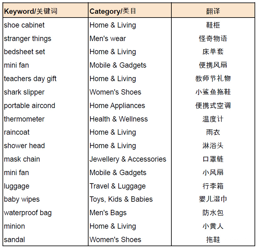 二. 关键词&商品分享