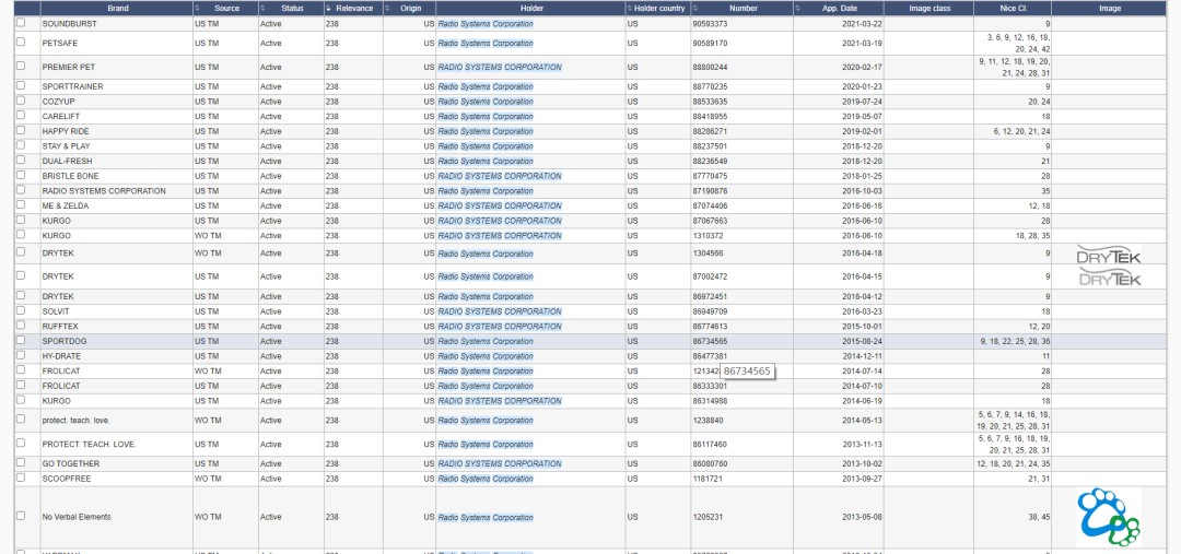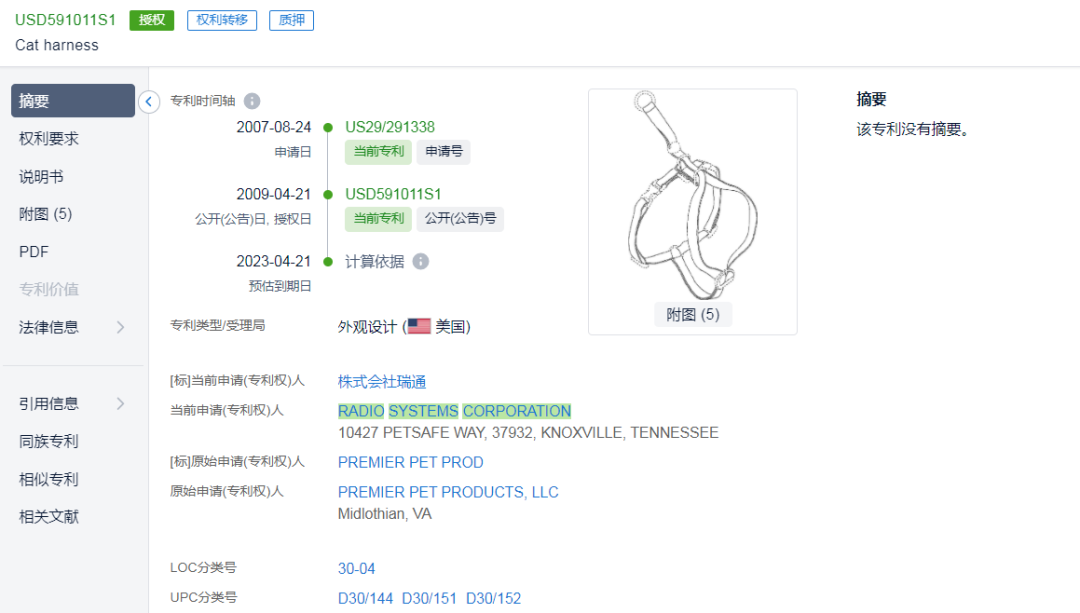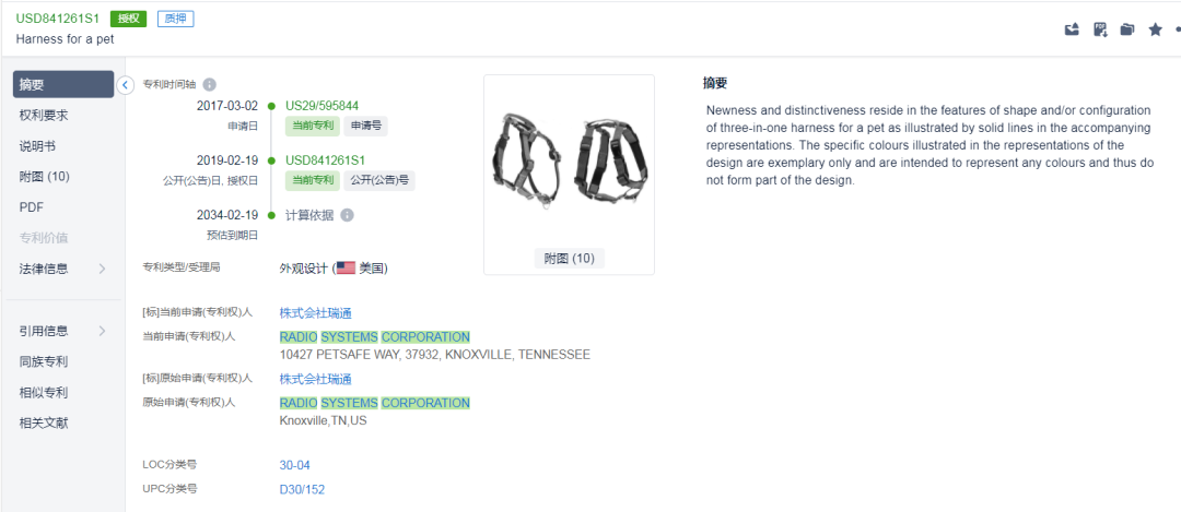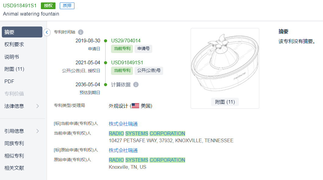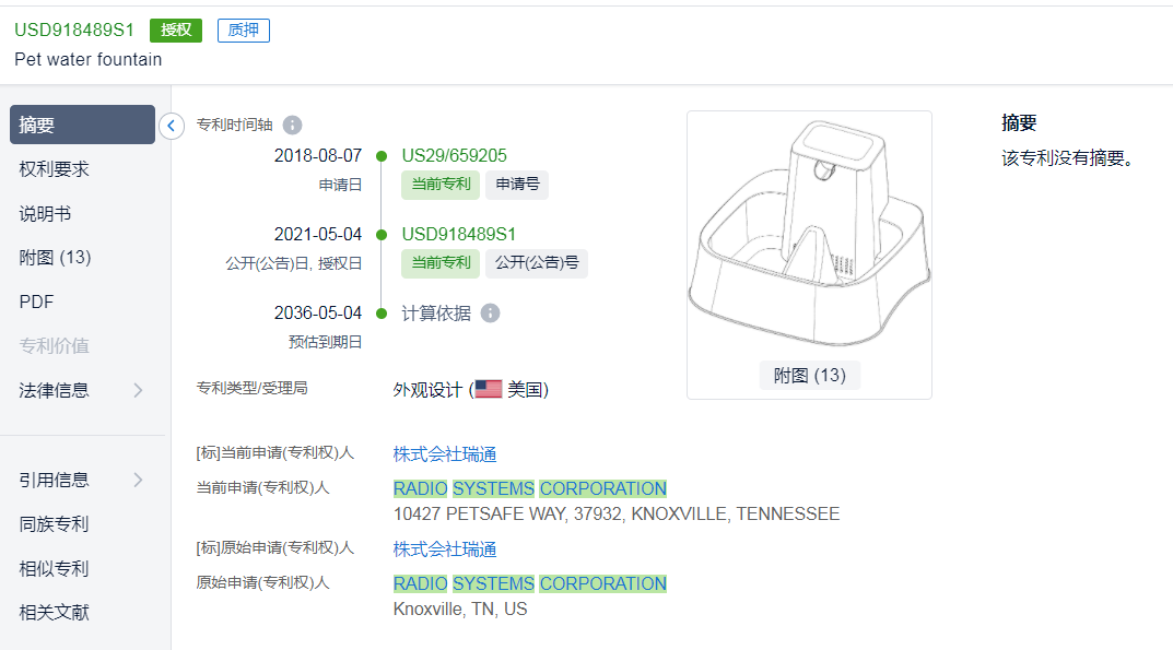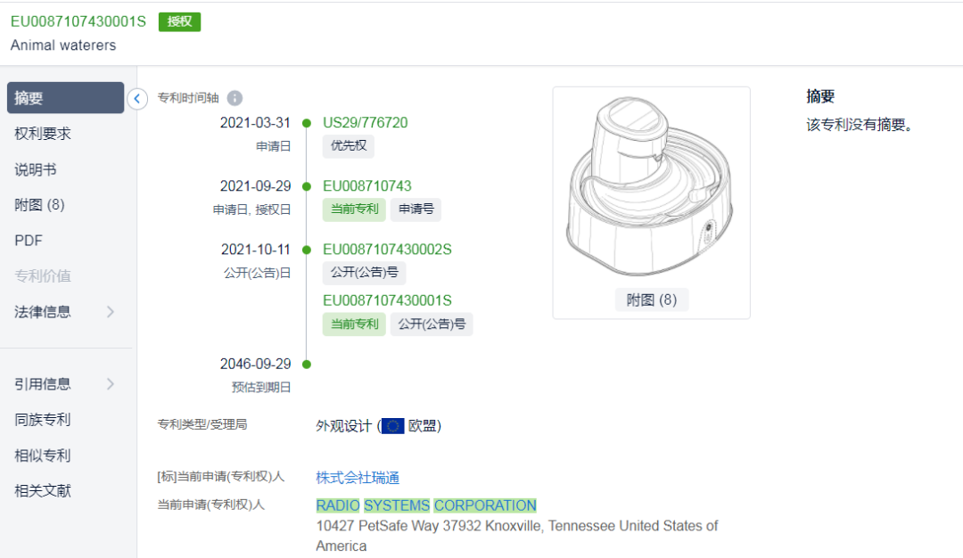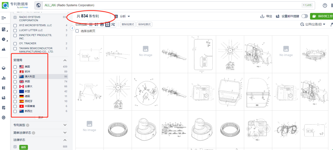 另外,PetSafe的专利也非常多,权利人Radio Systems Corporation旗下目前有效专利有834条,覆盖全球多个国家。