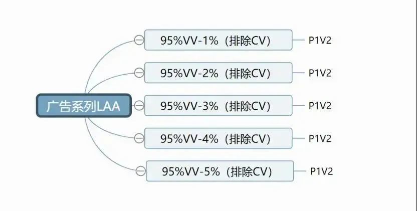 一般情况下我们可以跑的LAA,数据可以分95%VV(2000个种子数据),CV(2000个种子数据),VTS25%(1000个种子数据),ATC(500个种子数据),IC(500个种子数据),PUR(200-500个种子数据)都是可以去跑LAA的,起始预算可以设置100-400,每个组设置最低花费5-10美金,起跑时间设置0点,理论上可以设置20*5*CPA,大部分是接受不了这么的高预算。